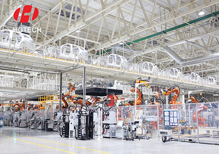 Using laser cutting technology of open-book blanking of a complete set of production equipment, by feeding trolley, uncoiled, leveling machine, buffer loop, servo feeder (such as servo leveling and feeding machine can replace the previous leveler and buffer loop, reducing area), laser cutting device, cutting platform, pallet device, waste treatment system, hydraulic pneumatic system and electric control system, through the system control of laser cutting head in laser cutting platform of 3 d motion cutting, instead of press and die, the realization of automatic blanking of the