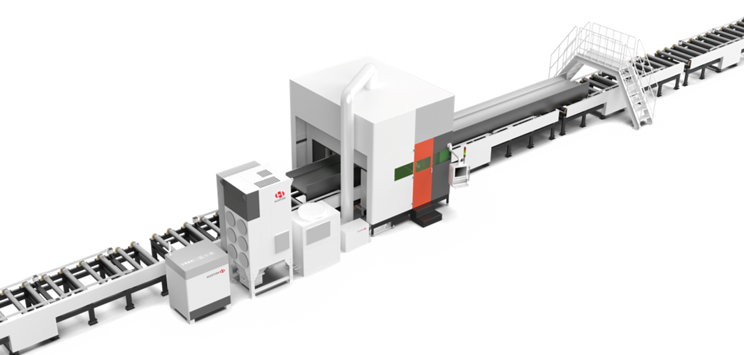 Intelligent equipment for laser cutting of structural steel is primarily applied in the steel structure industry, demonstrating excellent processing results for I-beams, H-beams, channel steel, and angle steel. It can achieve beveling, cutting, punching, and marking processing for the flange and web of H-beams, and can perform rootless cutting for overwelding holes or locked joints. Automated equipment can be integrated with assembly welding equipment to form an automatic steel processing line, reducing labor and significantly enhancing the efficiency of steel processing.